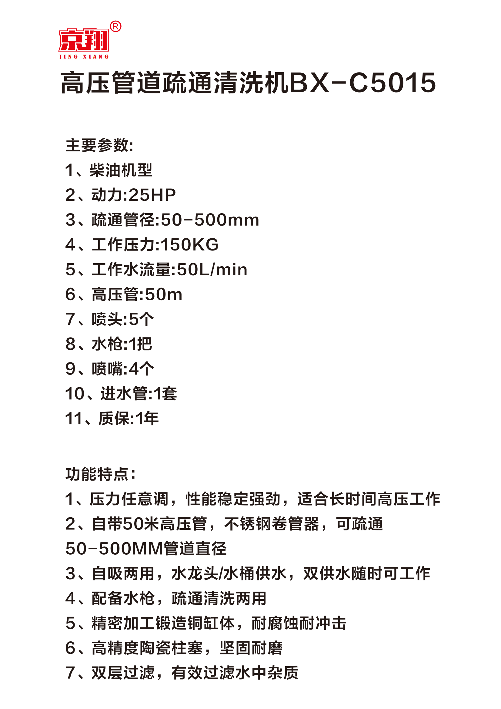 柴油机型高压管道疏通清洗机BX-C5015