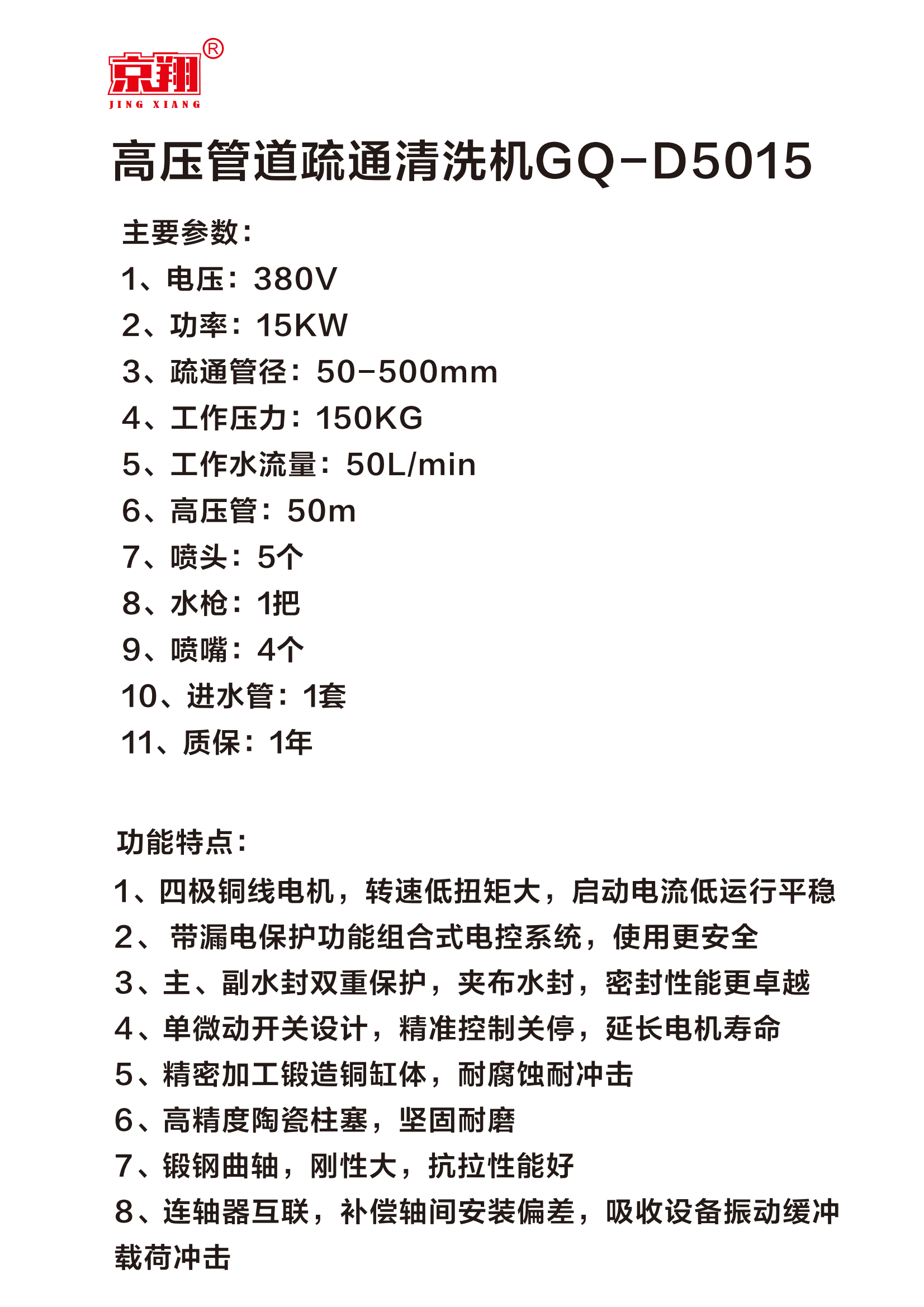 380V电动型高压管道疏通清洗机GQ-D5015(1)